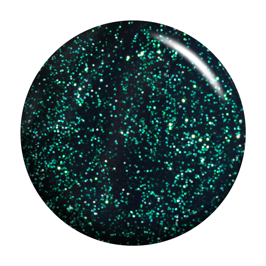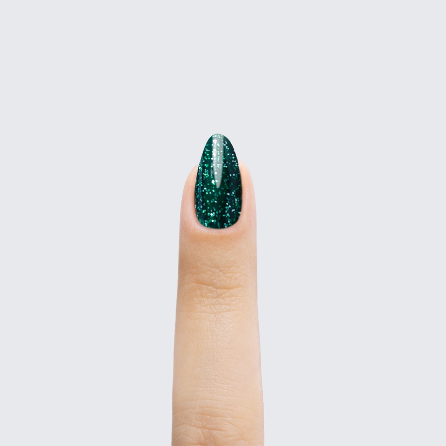 Glitter glistens in the perfect pitch of this deep emerald polish.